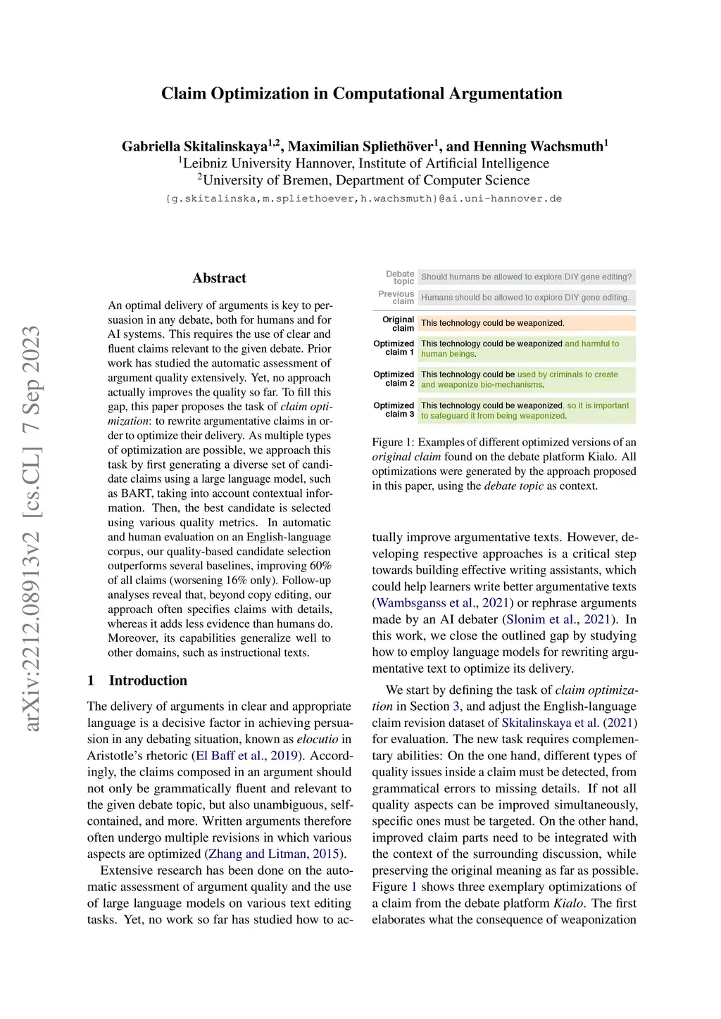 Claim Optimization in Computational Argumentation