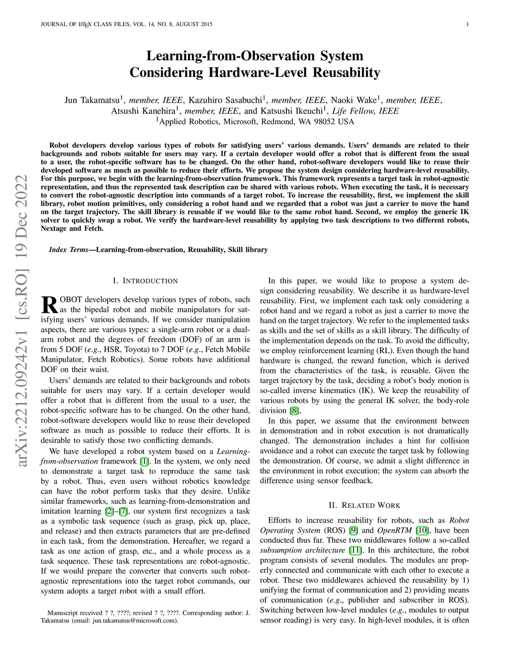 Learning-from-Observation System Considering Hardware-Level Reusability
