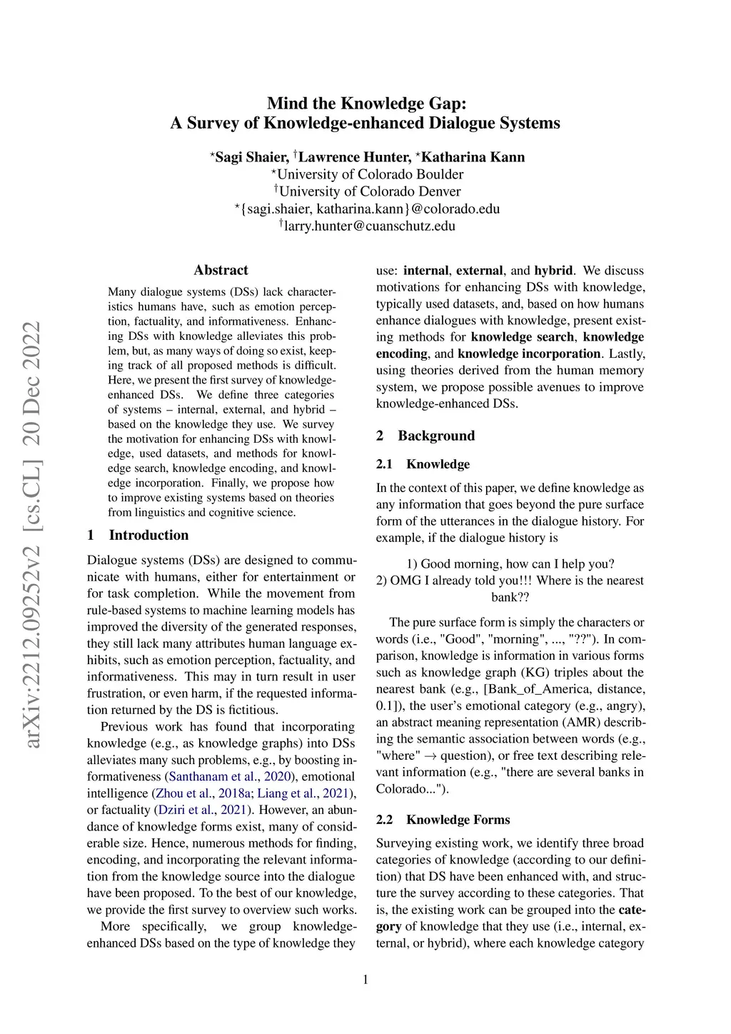 Mind the Knowledge Gap: A Survey of Knowledge-enhanced Dialogue Systems
