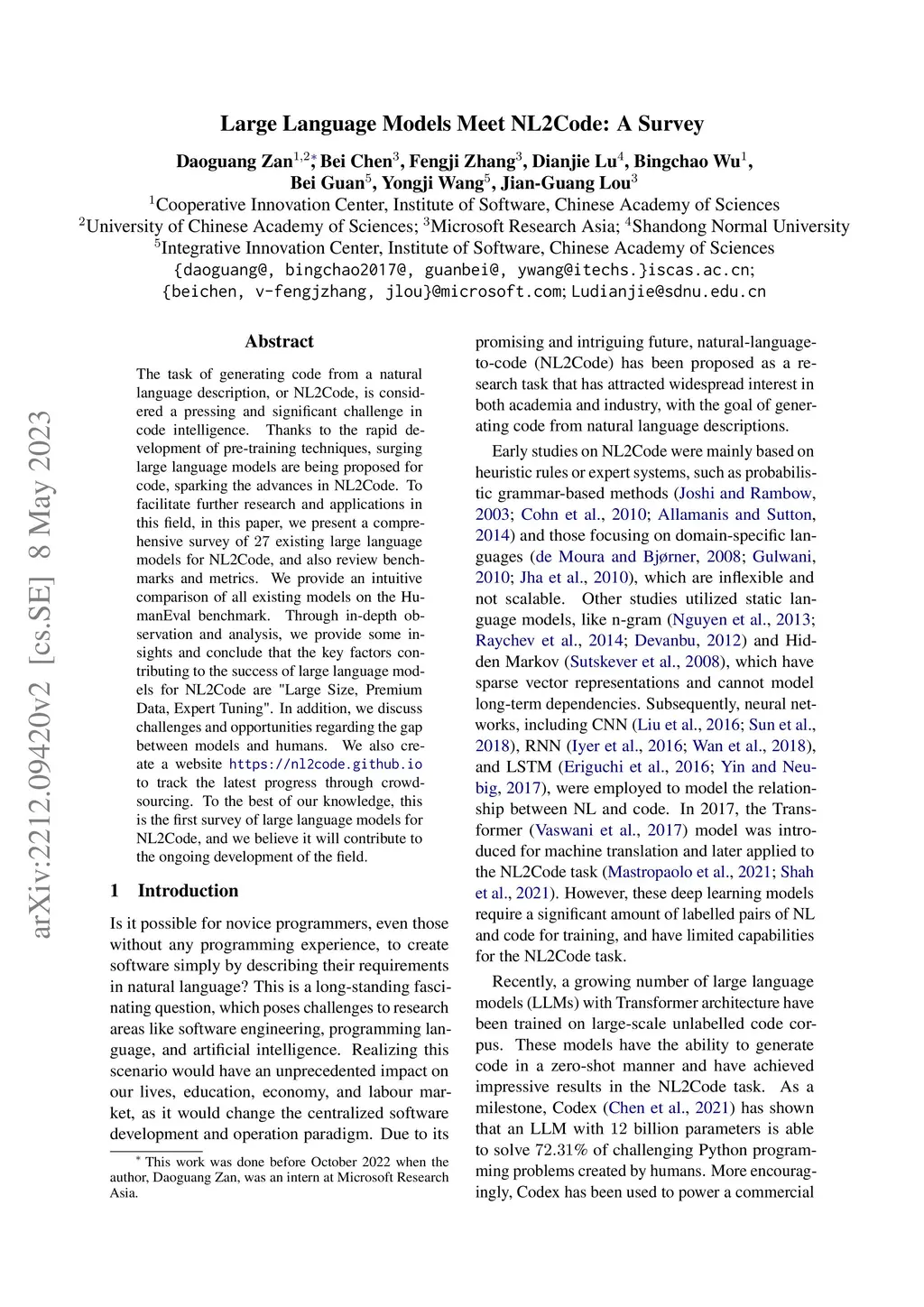 Large Language Models Meet NL2Code: A Survey