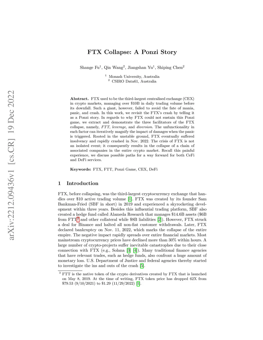 FTX used to be the third-largest centralised exchange (CEX) in crypto markets, managing over \$10B in daily trading volume before its downfall. Such a giant, however, failed to avoid the fate of mania, panic, and crash. In this work, we revisit the FTX's crash by telling it as a Ponzi story. In regards to why FTX could not sustain this Ponzi game, we extract and demonstrate the three facilitators of the FTX collapse, namely, \textit{FTT}, \textit{leverage}, and \textit{diversion}. The unfunctionality in each factor can iteratively magnify the impact of damages when the panic is triggered. Rooted in the unstable ground, FTX eventually suffered insolvency and rapidly crashed in Nov. 2022. The crisis of FTX is not an isolated event; it consequently results in the collapse of a chain of associated companies in the entire crypto market. Recall this painful experience, we discuss possible paths for a way forward for both CeFi and DeFi services.