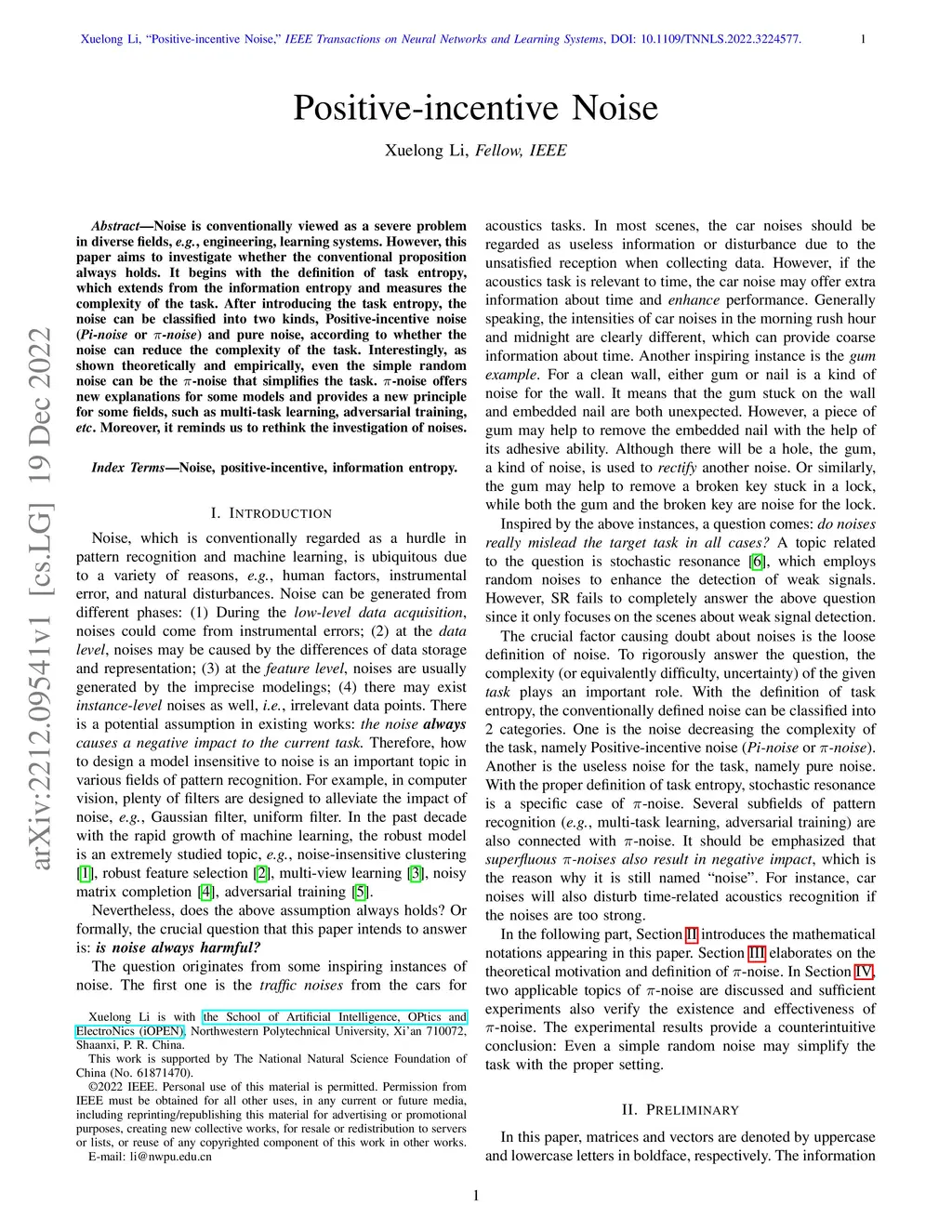 Noise is conventionally viewed as a severe problem in diverse fields, e.g., engineering, learning systems. However, this paper aims to investigate whether the conventional proposition always holds. It begins with the definition of task entropy, which extends from the information entropy and measures the complexity of the task. After introducing the task entropy, the noise can be classified into two kinds, Positive-incentive noise (Pi-noise or -noise) and pure noise, according to whether the noise can reduce the complexity of the task. Interestingly, as shown theoretically and empirically, even the simple random noise can be the -noise that simplifies the task. -noise offers new explanations for some models and provides a new principle for some fields, such as multi-task learning, adversarial training, etc. Moreover, it reminds us to rethink the investigation of noises.