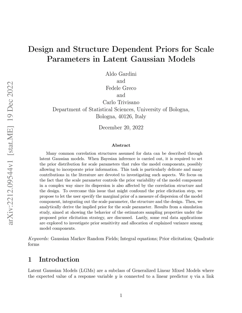 Many common correlation structures assumed for data can be described through latent Gaussian models. When Bayesian inference is carried out, it is required to set the prior distribution for scale parameters that rules the model components, possibly allowing to incorporate prior information. This task is particularly delicate and many contributions in the literature are devoted to investigating such aspects. We focus on the fact that the scale parameter controls the prior variability of the model component in a complex way since its dispersion is also affected by the correlation structure and the design. To overcome this issue that might confound the prior elicitation step, we propose to let the user specify the marginal prior of a measure of dispersion of the model component, integrating out the scale parameter, the structure and the design. Then, we analytically derive the implied prior for the scale parameter. Results from a simulation study, aimed at showing the behavior of the estimators sampling properties under the proposed prior elicitation strategy, are discussed. Lastly, some real data applications are explored to investigate prior sensitivity and allocation of explained variance among model components.