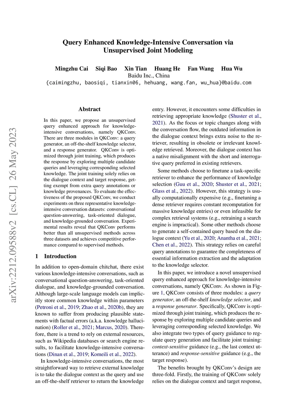 Query Enhanced Knowledge-Intensive Conversation via Unsupervised Joint