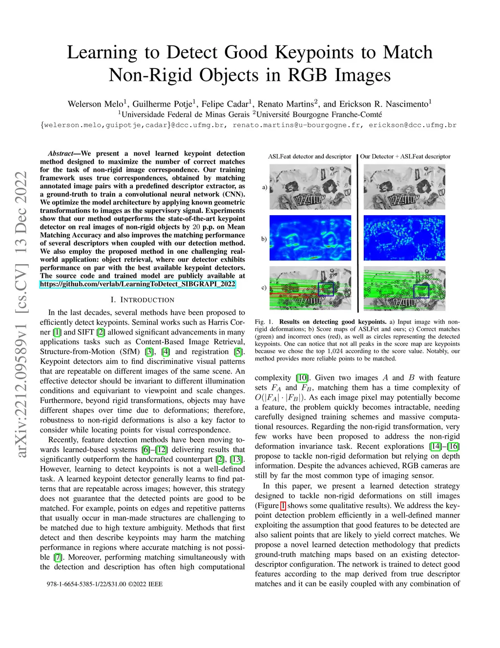 Learning to Detect Good Keypoints to Match Non-Rigid Objects in RGB
