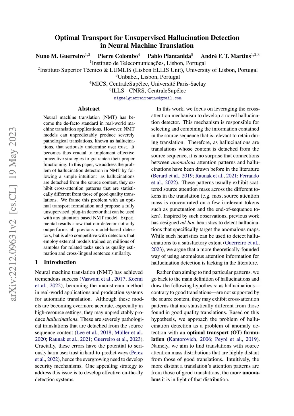 Optimal Transport for Unsupervised Hallucination Detection in Neural