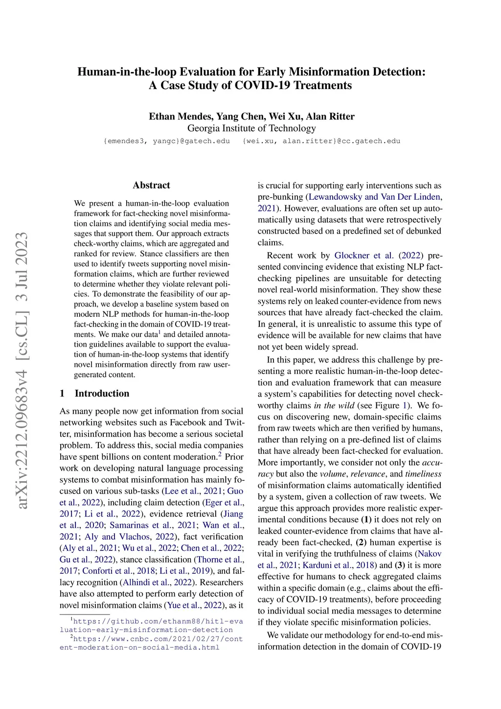 Human-in-the-loop Evaluation for Early Misinformation Detection: A Case