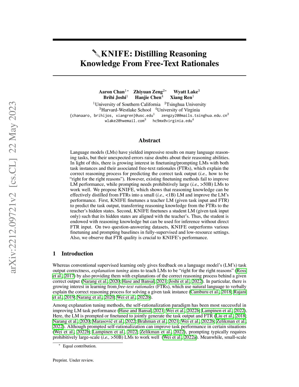 KNIFE: Distilling Reasoning Knowledge From Free-Text Rationales