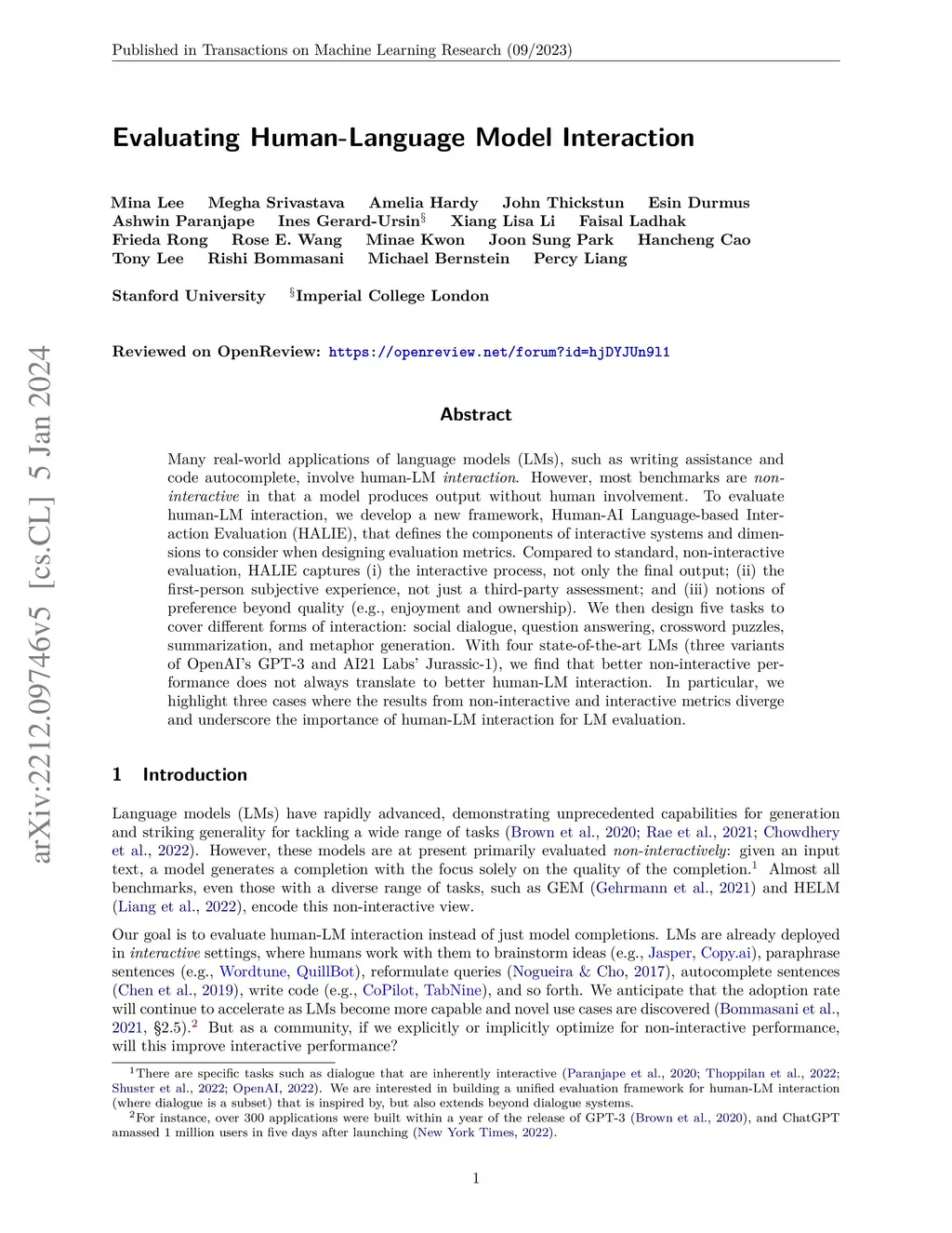Evaluating Human-Language Model Interaction