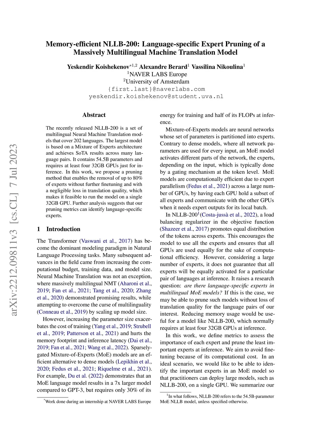 Memory-efficient NLLB-200: Language-specific Expert Pruning of a