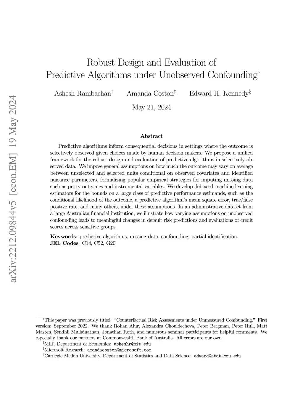 Robust Design and Evaluation of Predictive Algorithms under Unobserved