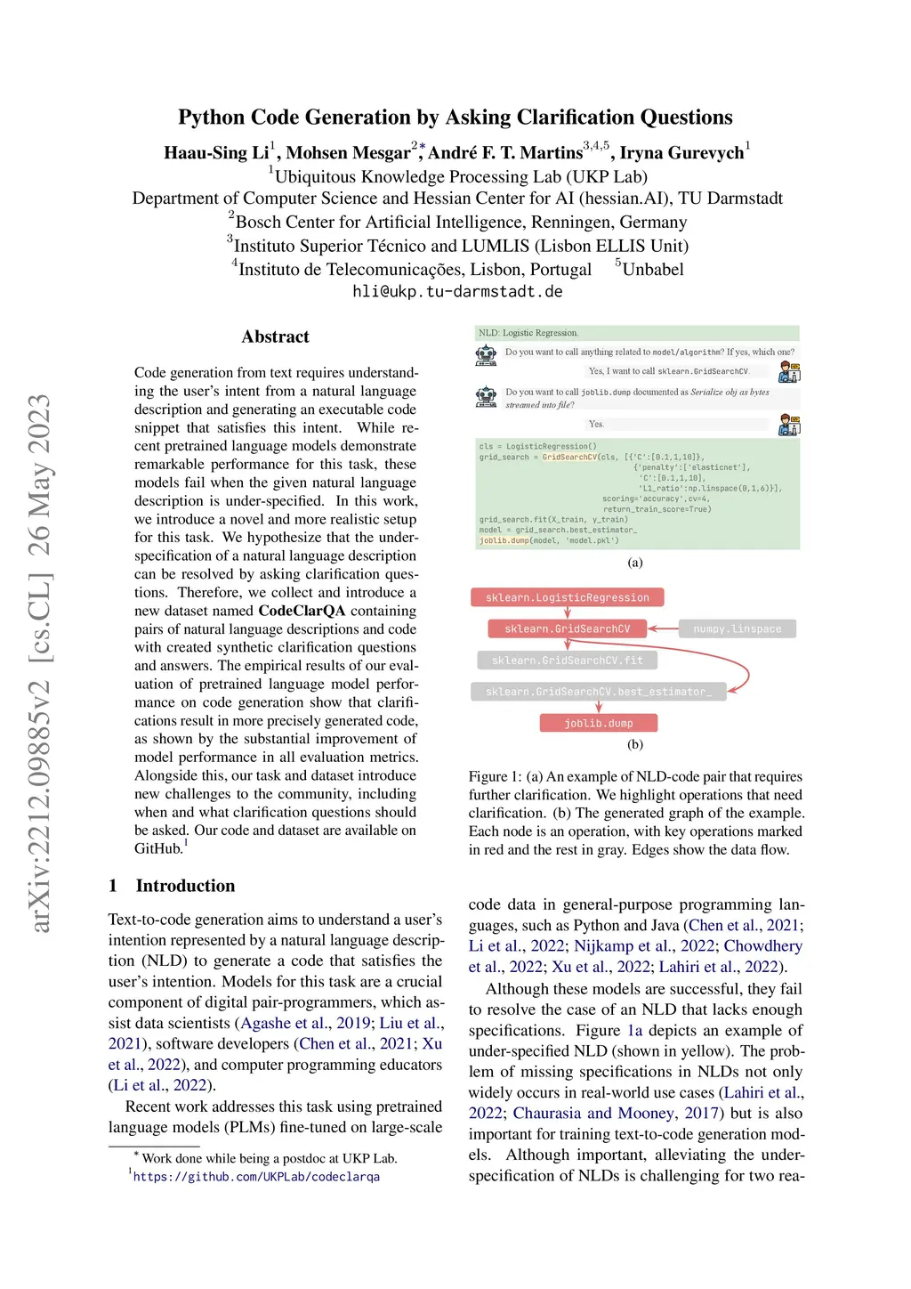 Python Code Generation by Asking Clarification Questions