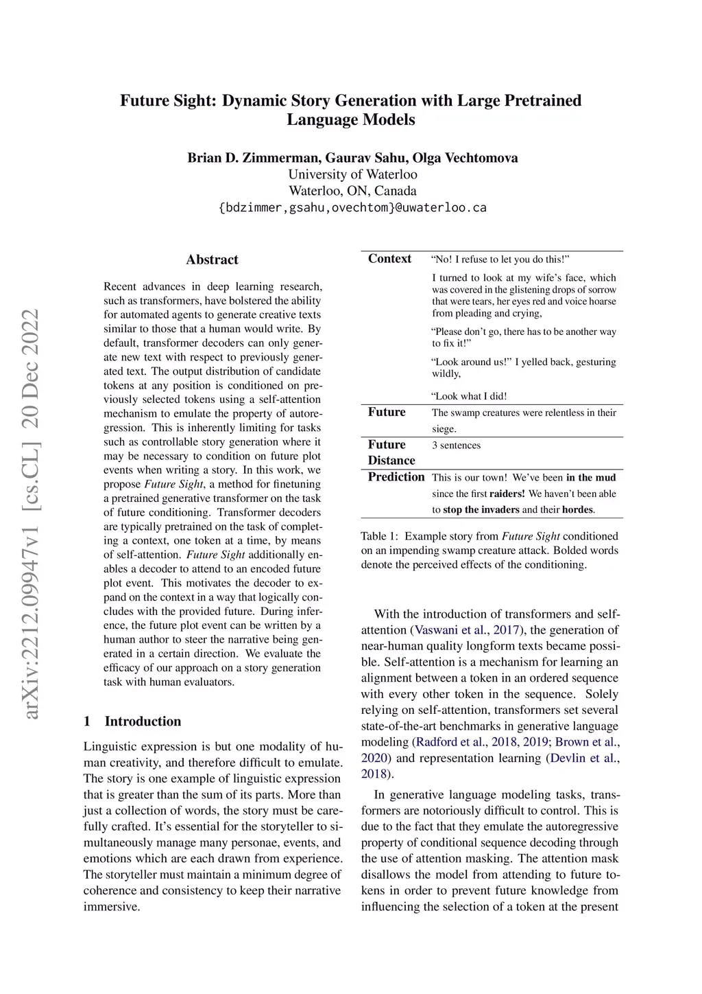 Future Sight: Dynamic Story Generation with Large Pretrained Language