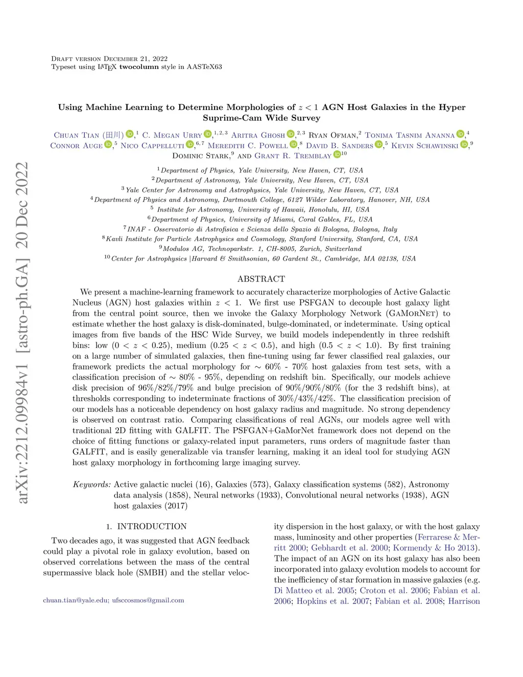 Using Machine Learning to Determine Morphologies of AGN Host