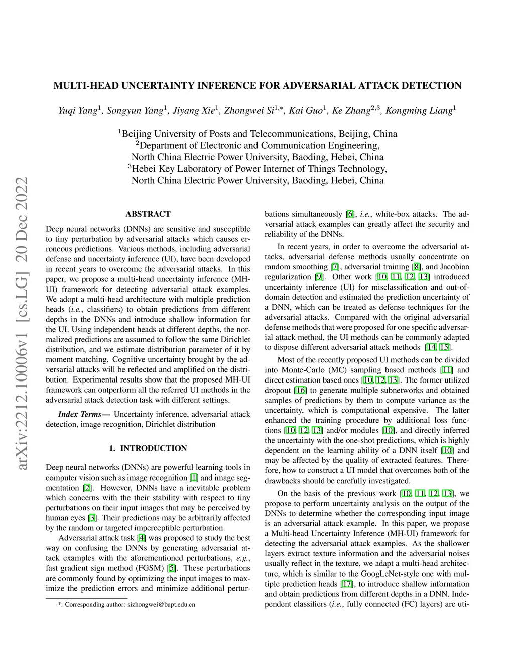 Multi-head Uncertainty Inference for Adversarial Attack Detection