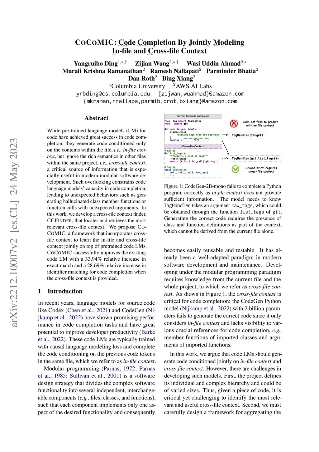 CoCoMIC: Code Completion By Jointly Modeling In-file and Cross-file