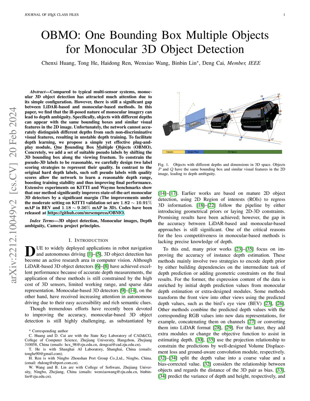 OBMO: One Bounding Box Multiple Objects for Monocular 3D Object