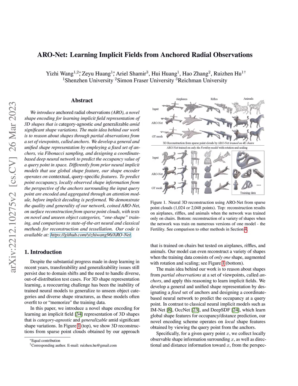 ARO-Net: Learning Implicit Fields from Anchored Radial Observations