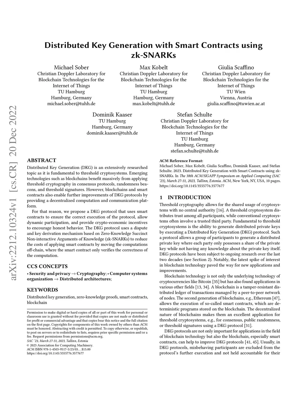 Distributed Key Generation with Smart Contracts using zk-SNARKs