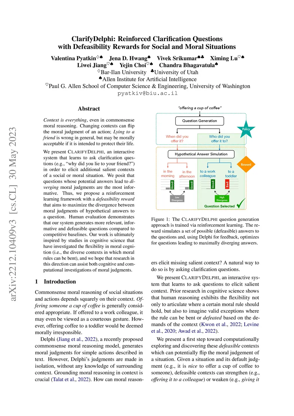 ClarifyDelphi: Reinforced Clarification Questions with Defeasibility
