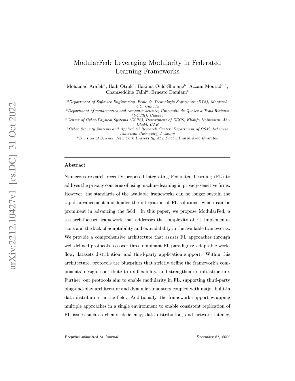 ModularFed: Leveraging Modularity in Federated Learning Frameworks