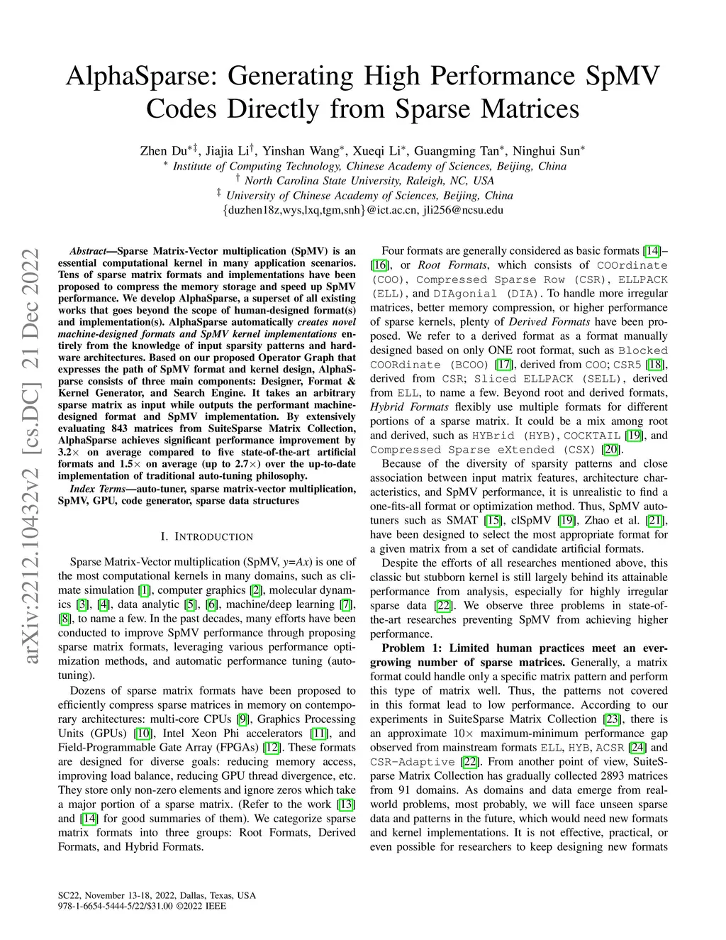 AlphaSparse: Generating High Performance SpMV Codes Directly from Sparse
