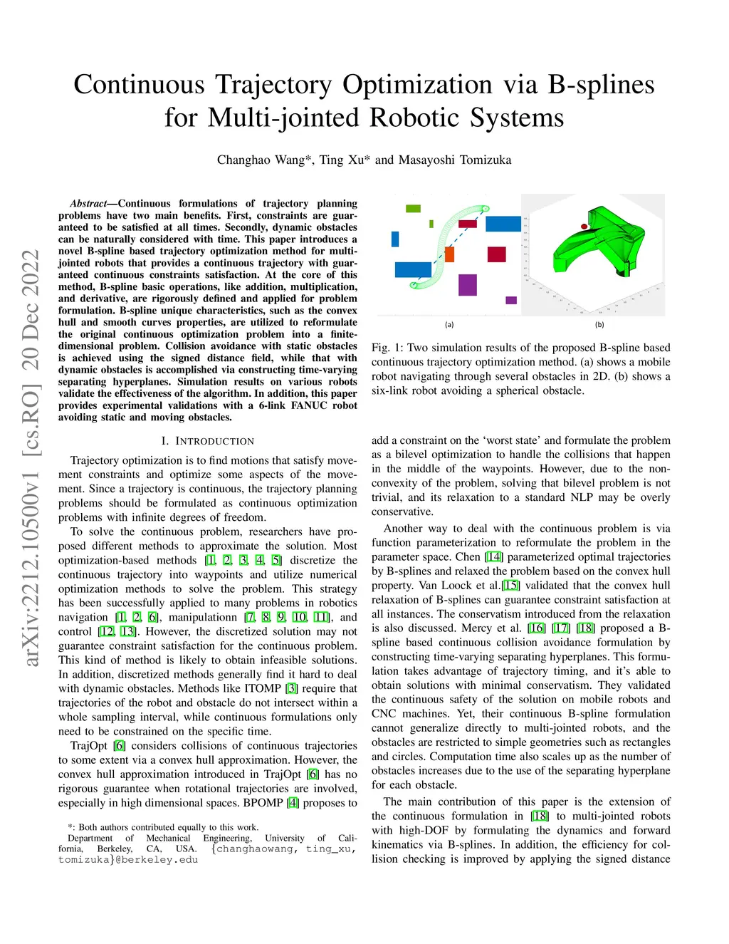 Continuous Trajectory Optimization via B-splines for Multi-jointed