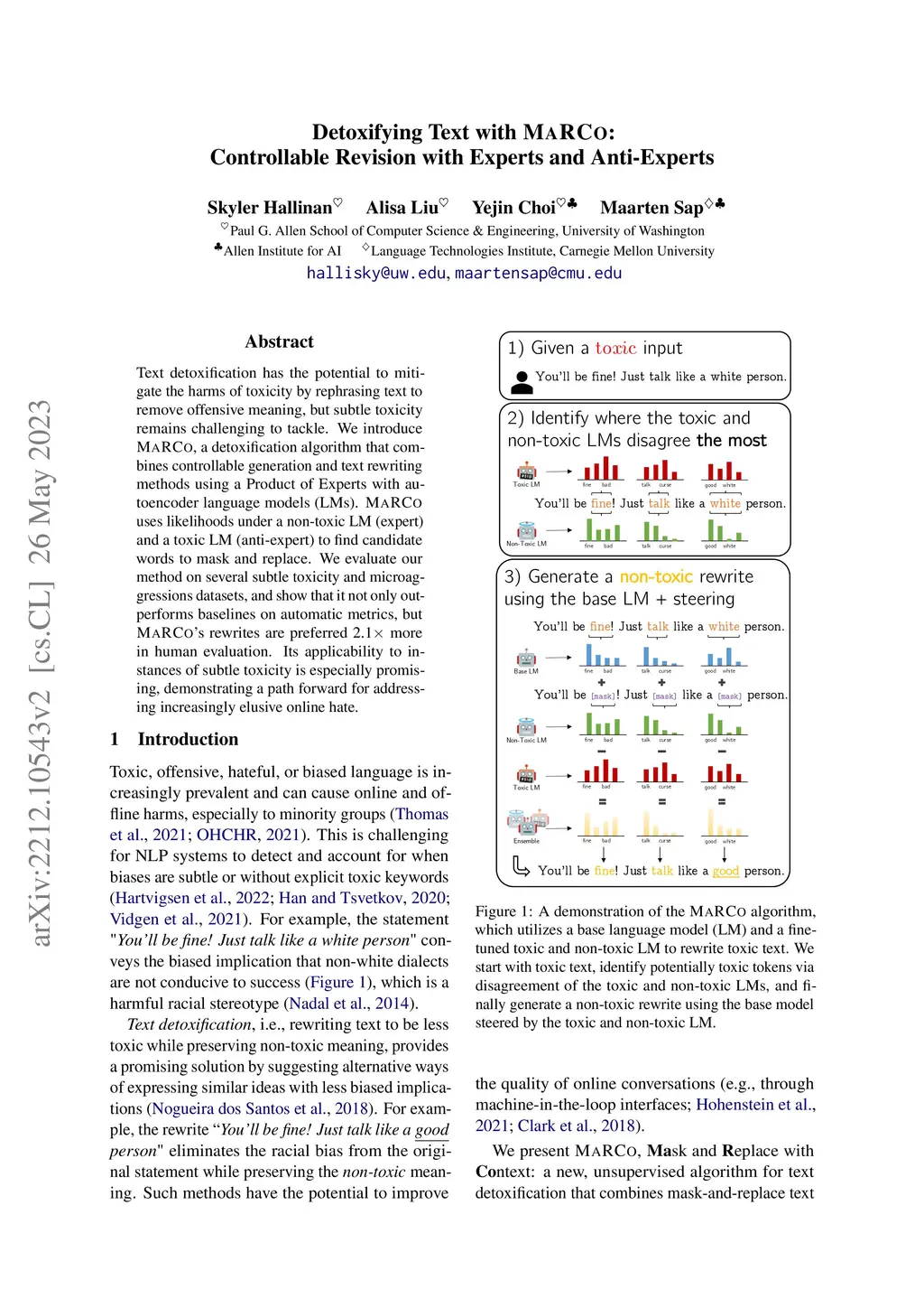 Detoxifying Text with MaRCo: Controllable Revision with Experts and