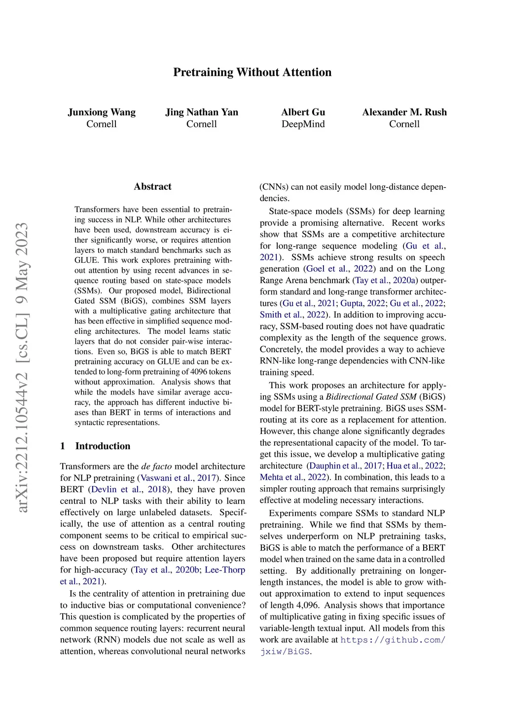 Pretraining Without Attention