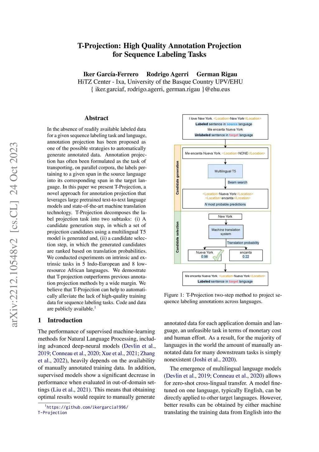 T-Projection: High Quality Annotation Projection for Sequence Labeling