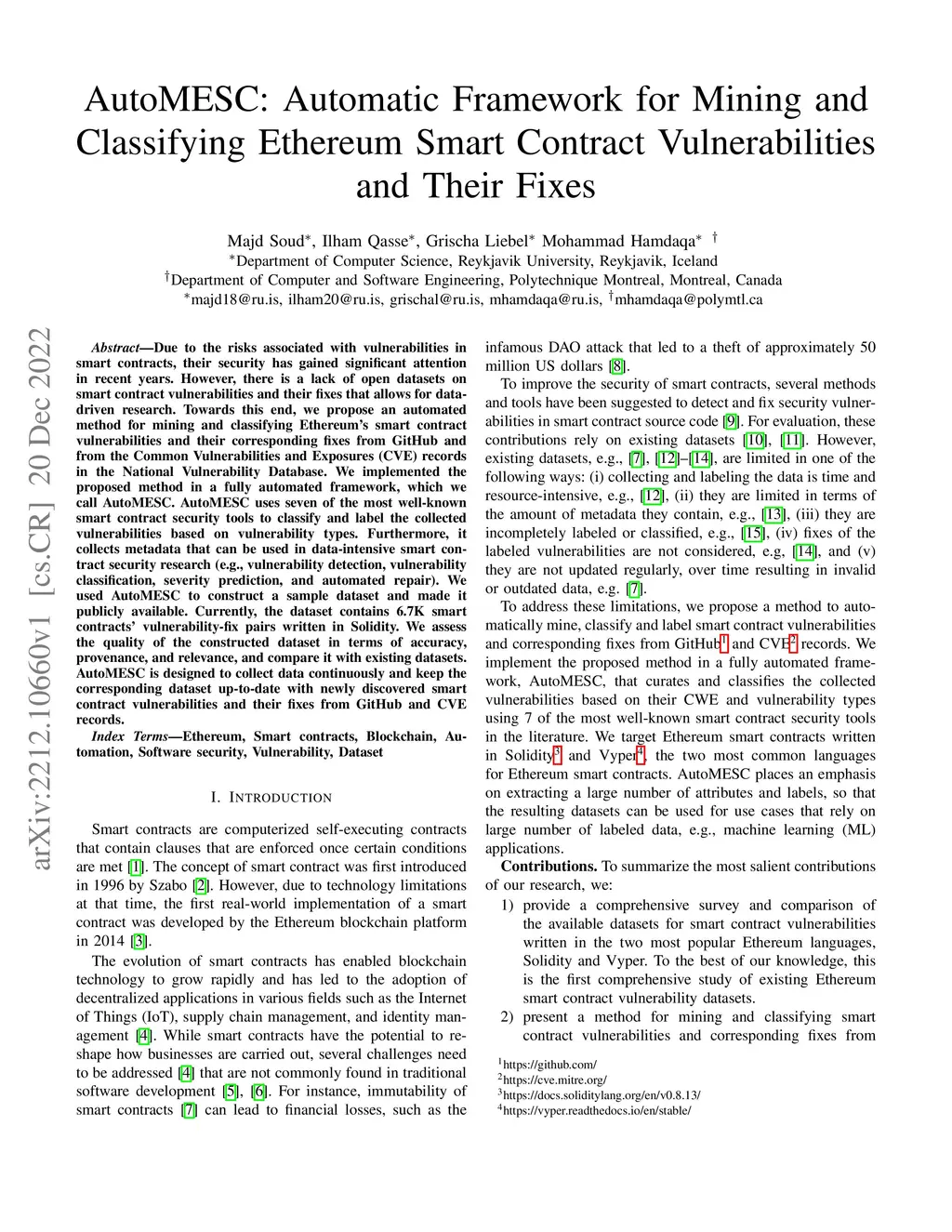 AutoMESC: Automatic Framework for Mining and Classifying Ethereum Smart