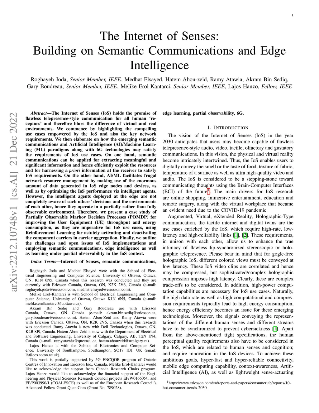 The Internet of Senses: Building on Semantic Communications and Edge