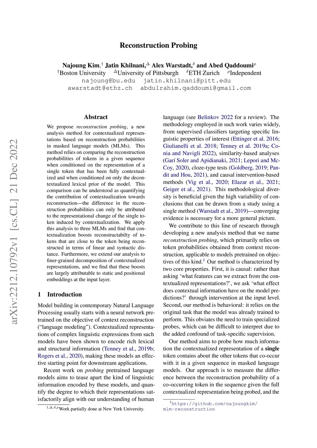 Reconstruction Probing
