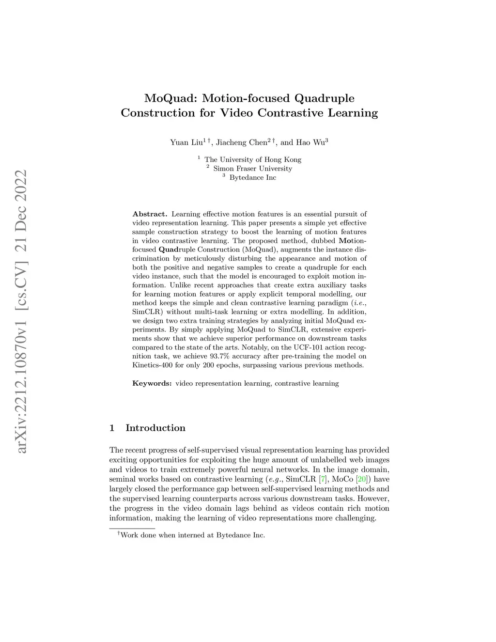 MoQuad: Motion-focused Quadruple Construction for Video Contrastive