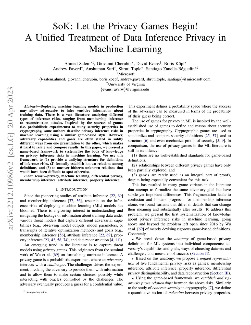 SoK: Let the Privacy Games Begin! A Unified Treatment of Data Inference