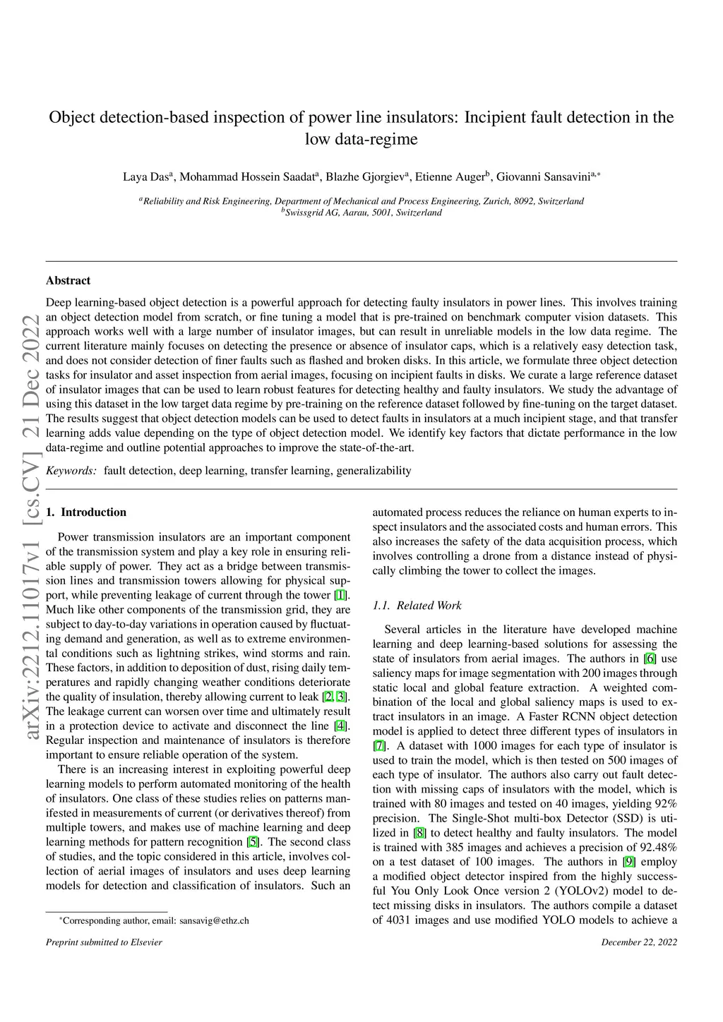 Object detection-based inspection of power line insulators: Incipient