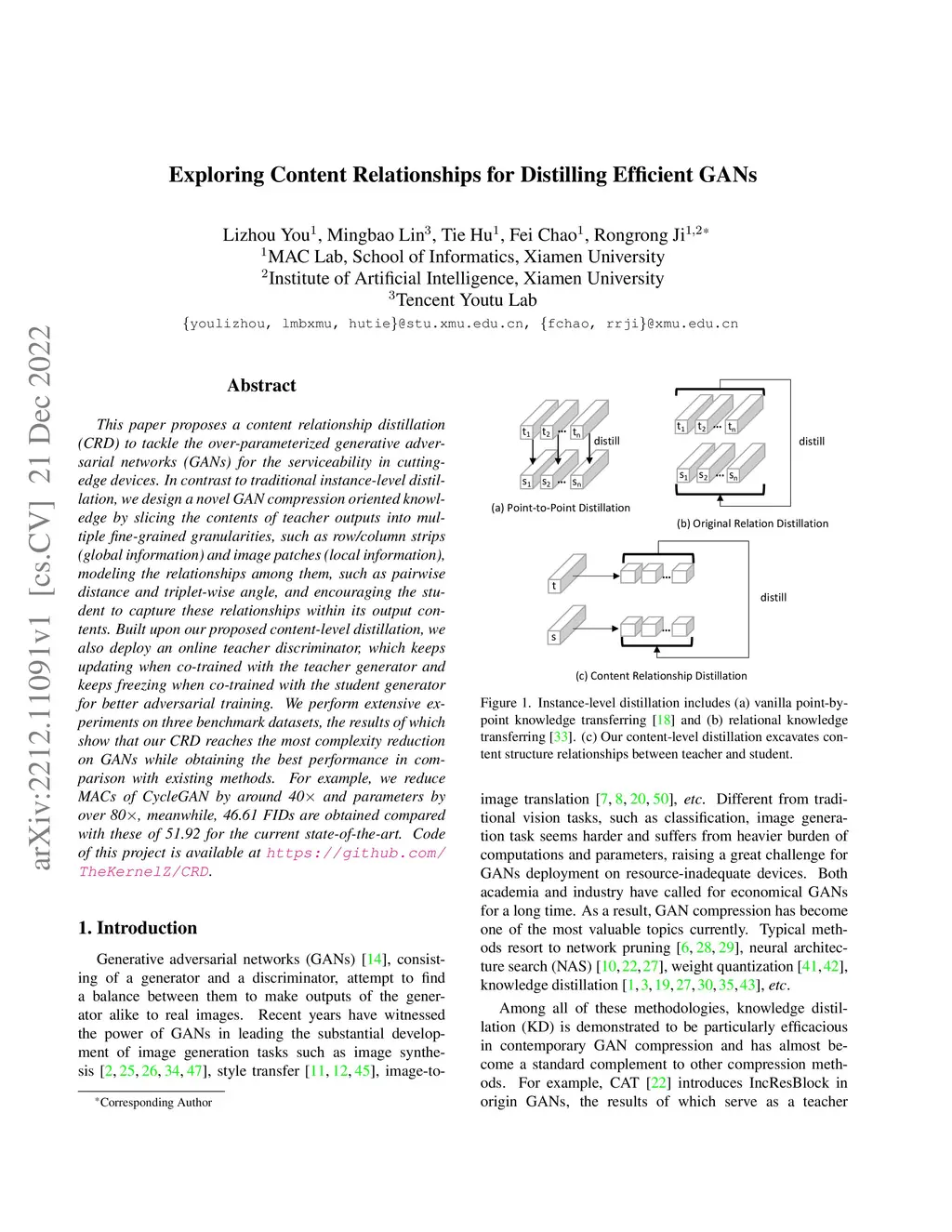 Exploring Content Relationships for Distilling Efficient GANs