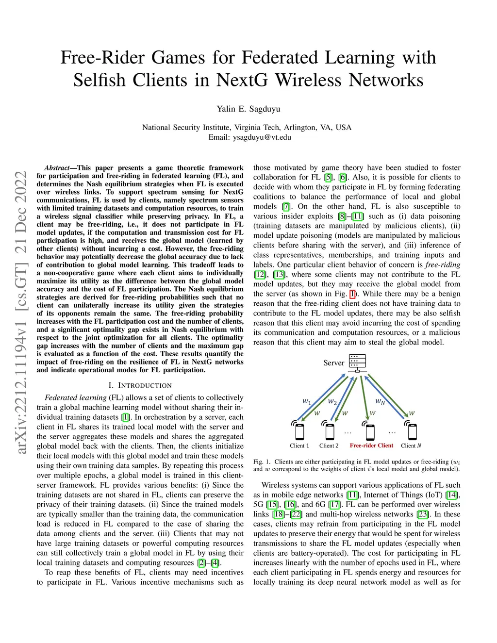 Free-Rider Games for Federated Learning with Selfish Clients in NextG