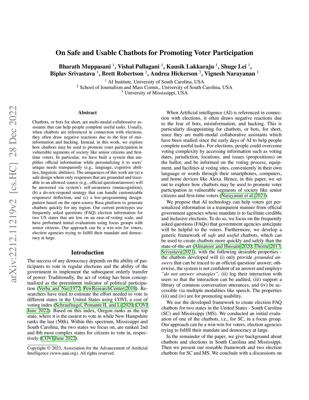 On Safe and Usable Chatbots for Promoting Voter Participation