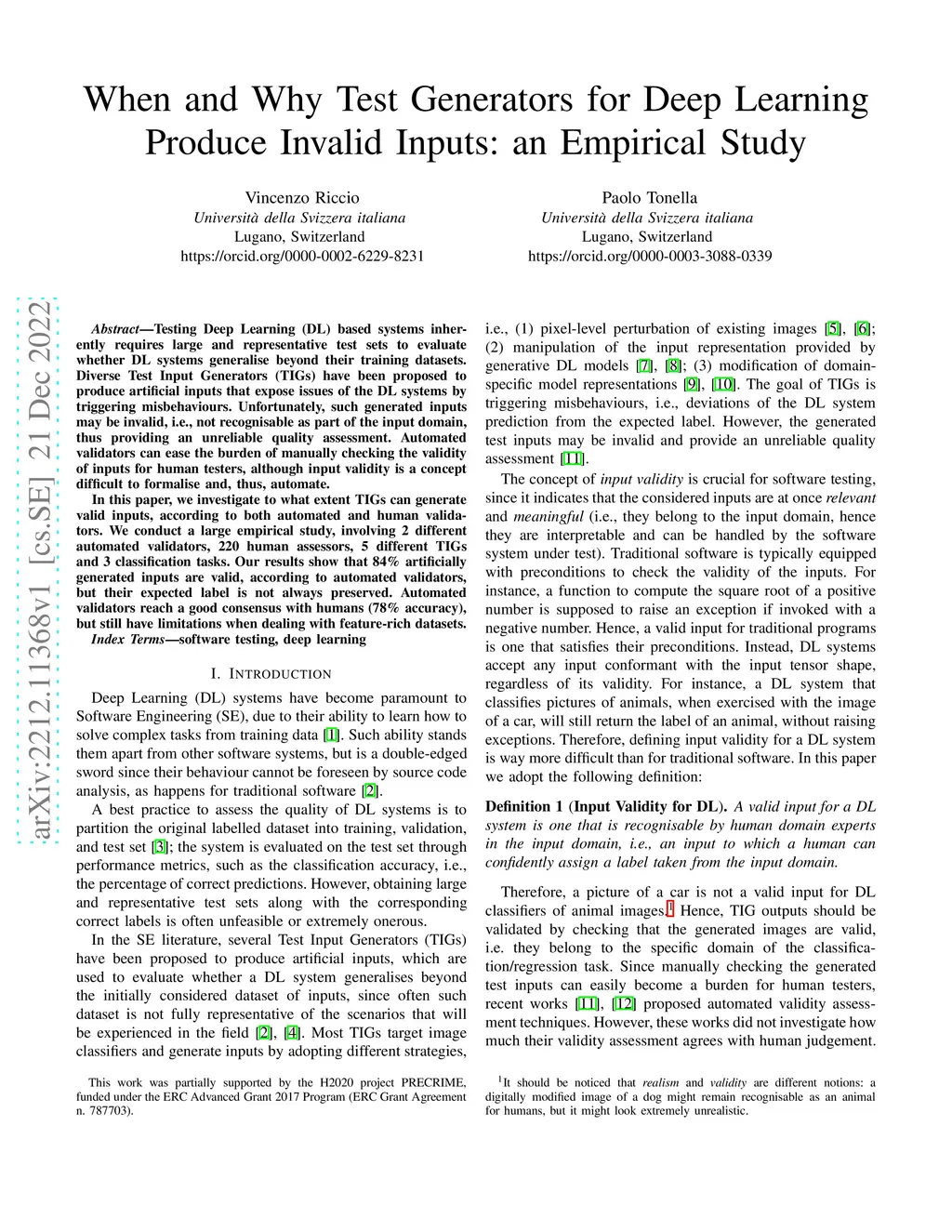 Testing Deep Learning (DL) based systems inherently requires large and representative test sets to evaluate whether DL systems generalise beyond their training datasets. Diverse Test Input Generators (TIGs) have been proposed to produce artificial inputs that expose issues of the DL systems by triggering misbehaviours. Unfortunately, such generated inputs may be invalid, i.e., not recognisable as part of the input domain, thus providing an unreliable quality assessment. Automated validators can ease the burden of manually checking the validity of inputs for human testers, although input validity is a concept difficult to formalise and, thus, automate. In this paper, we investigate to what extent TIGs can generate valid inputs, according to both automated and human validators. We conduct a large empirical study, involving 2 different automated validators, 220 human assessors, 5 different TIGs and 3 classification tasks. Our results show that 84% artificially generated inputs are valid, according to automated validators, but their expected label is not always preserved. Automated validators reach a good consensus with humans (78% accuracy), but still have limitations when dealing with feature-rich datasets.
