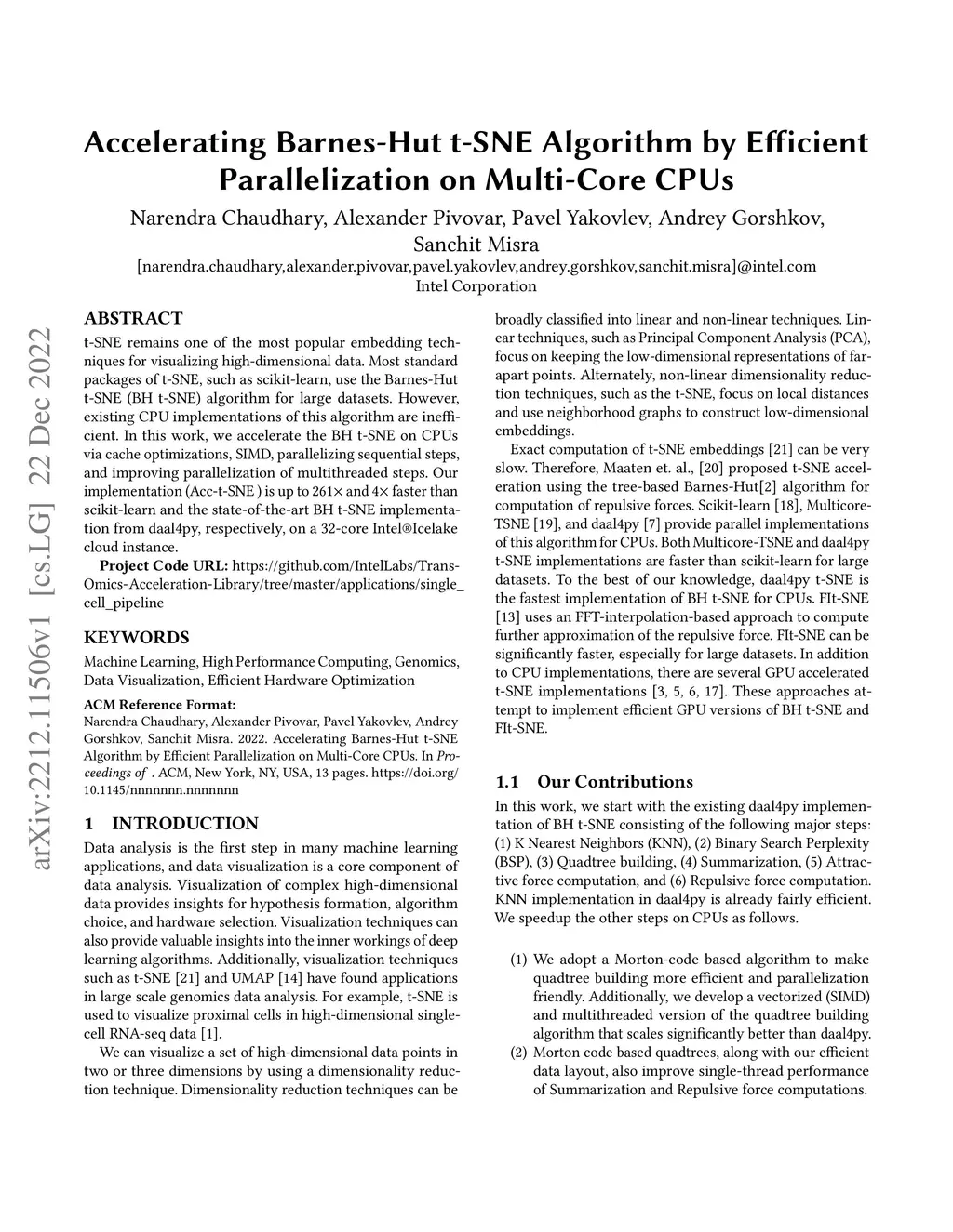 Accelerating Barnes-Hut t-SNE Algorithm by Efficient Parallelization on