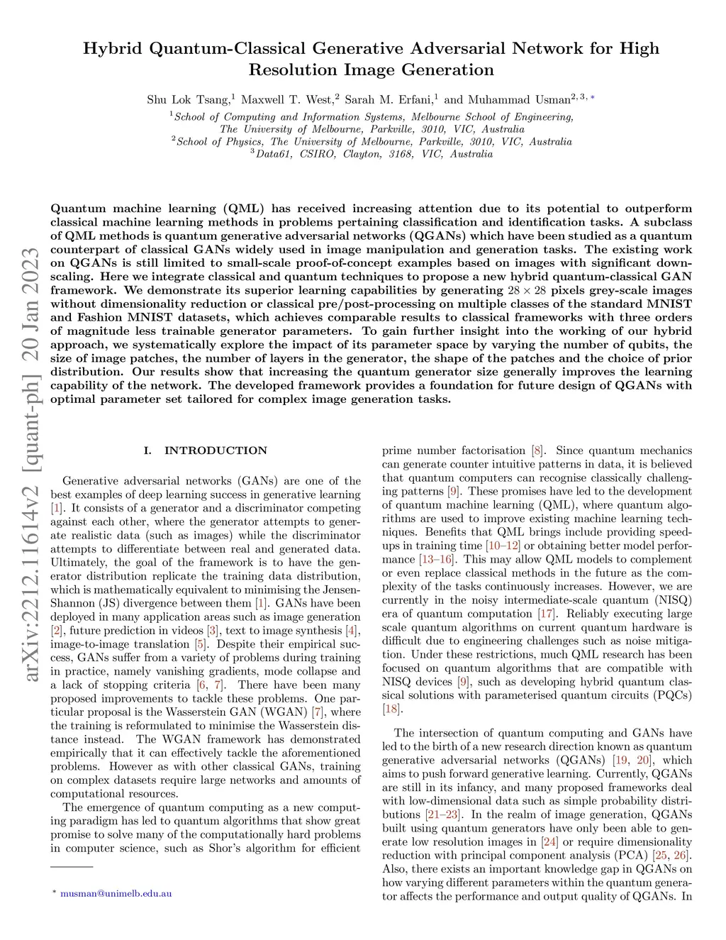 Hybrid Quantum-Classical Generative Adversarial Network for High