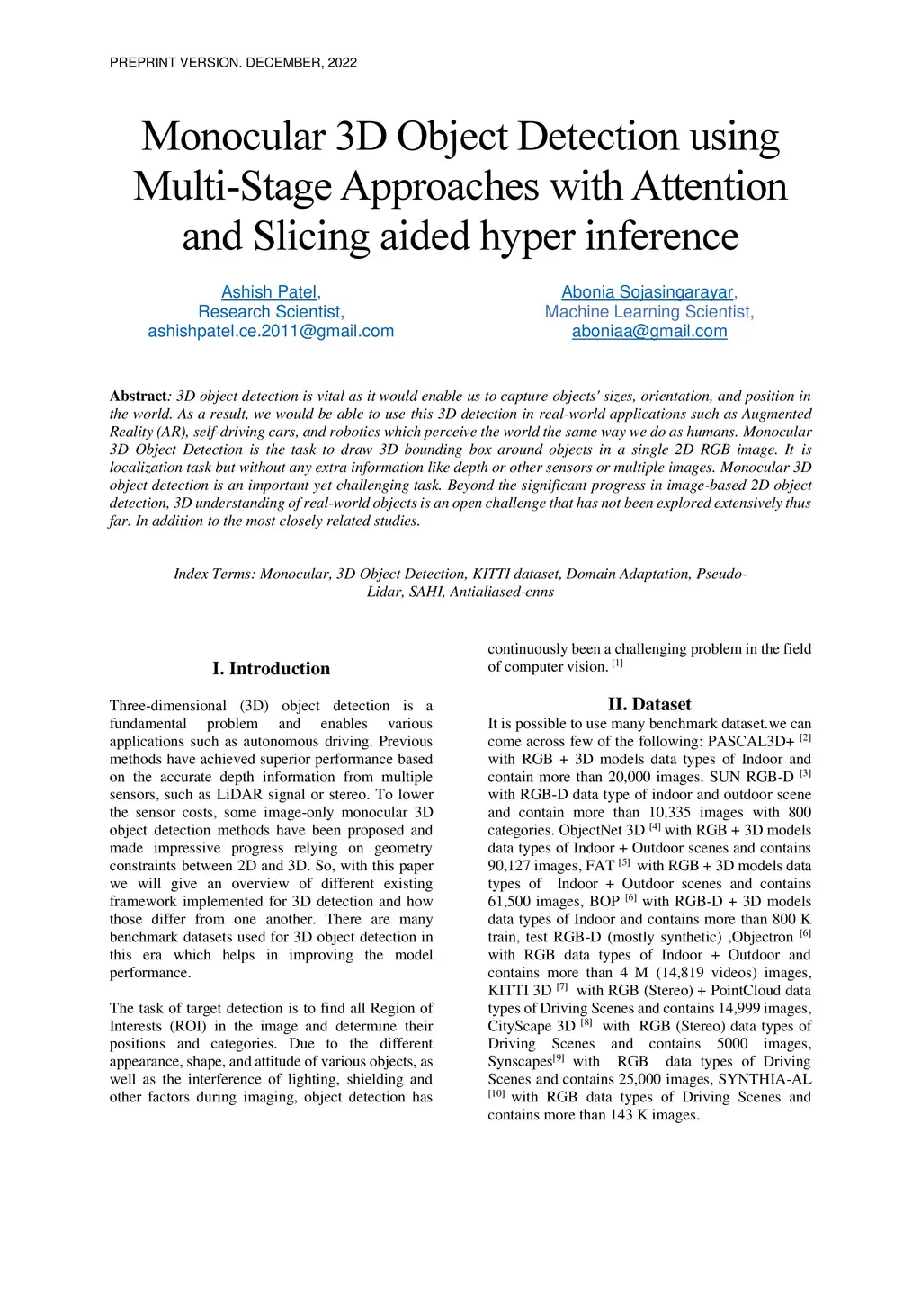 3D object detection is vital as it would enable us to capture objects' sizes, orientation, and position in the world. As a result, we would be able to use this 3D detection in real-world applications such as Augmented Reality (AR), self-driving cars, and robotics which perceive the world the same way we do as humans. Monocular 3D Object Detection is the task to draw 3D bounding box around objects in a single 2D RGB image. It is localization task but without any extra information like depth or other sensors or multiple images. Monocular 3D object detection is an important yet challenging task. Beyond the significant progress in image-based 2D object detection, 3D understanding of real-world objects is an open challenge that has not been explored extensively thus far. In addition to the most closely related studies.