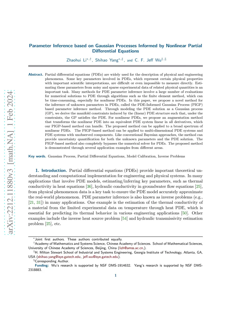 Parameter Inference based on Gaussian Processes Informed by Nonlinear