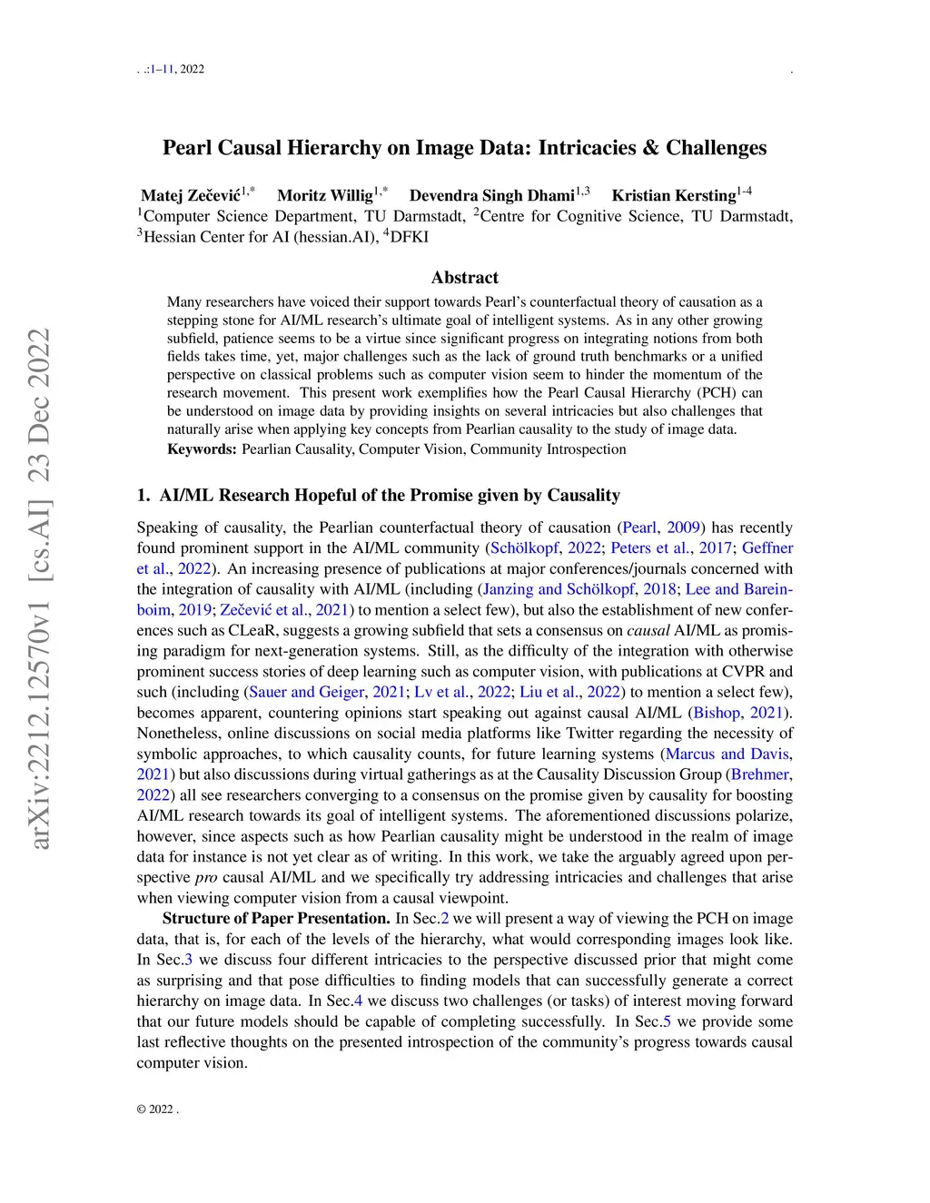 Many researchers have voiced their support towards Pearl's counterfactual theory of causation as a stepping stone for AI/ML research's ultimate goal of intelligent systems. As in any other growing subfield, patience seems to be a virtue since significant progress on integrating notions from both fields takes time, yet, major challenges such as the lack of ground truth benchmarks or a unified perspective on classical problems such as computer vision seem to hinder the momentum of the research movement. This present work exemplifies how the Pearl Causal Hierarchy (PCH) can be understood on image data by providing insights on several intricacies but also challenges that naturally arise when applying key concepts from Pearlian causality to the study of image data.