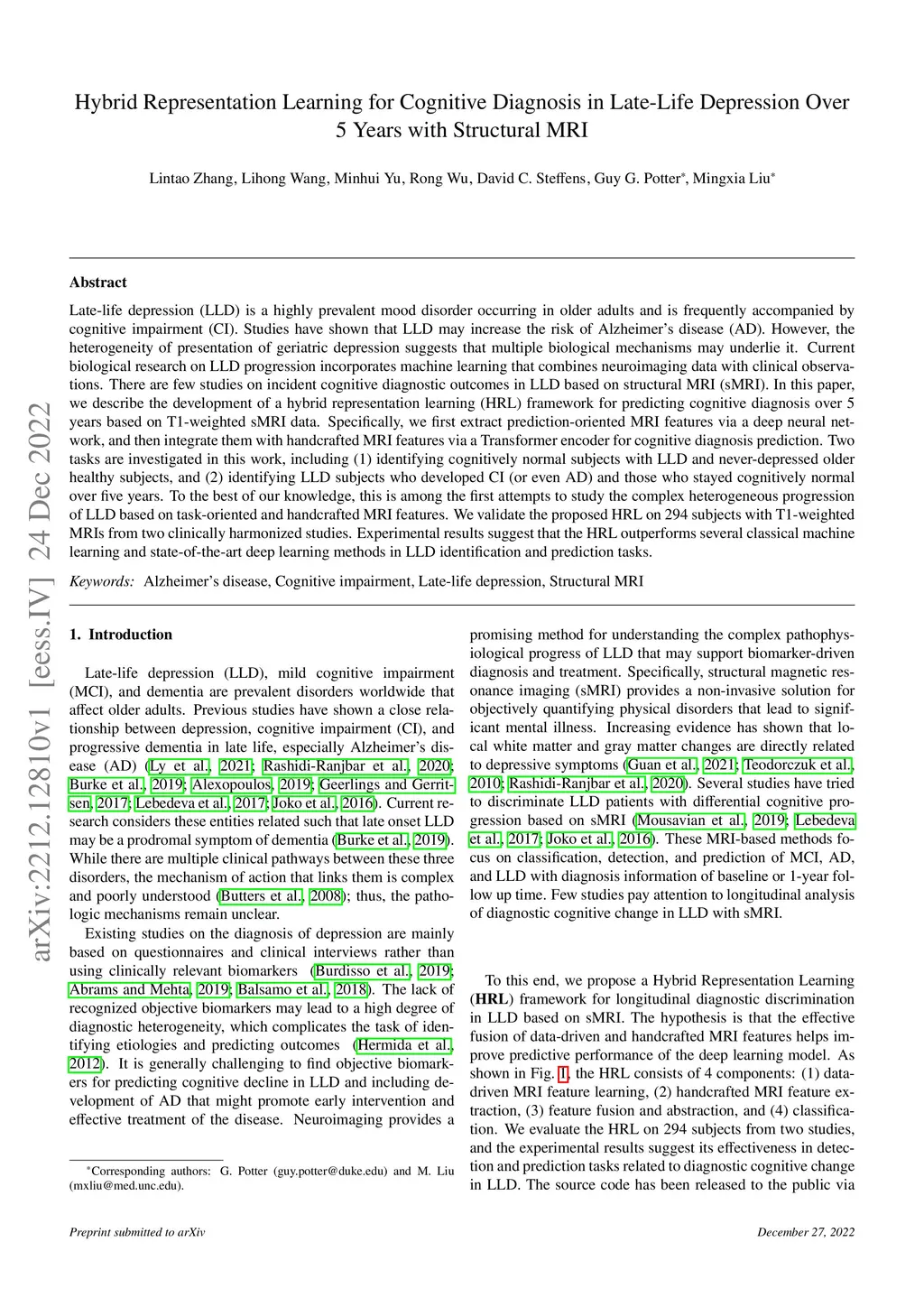 Hybrid Representation Learning for Cognitive Diagnosis in Late-Life