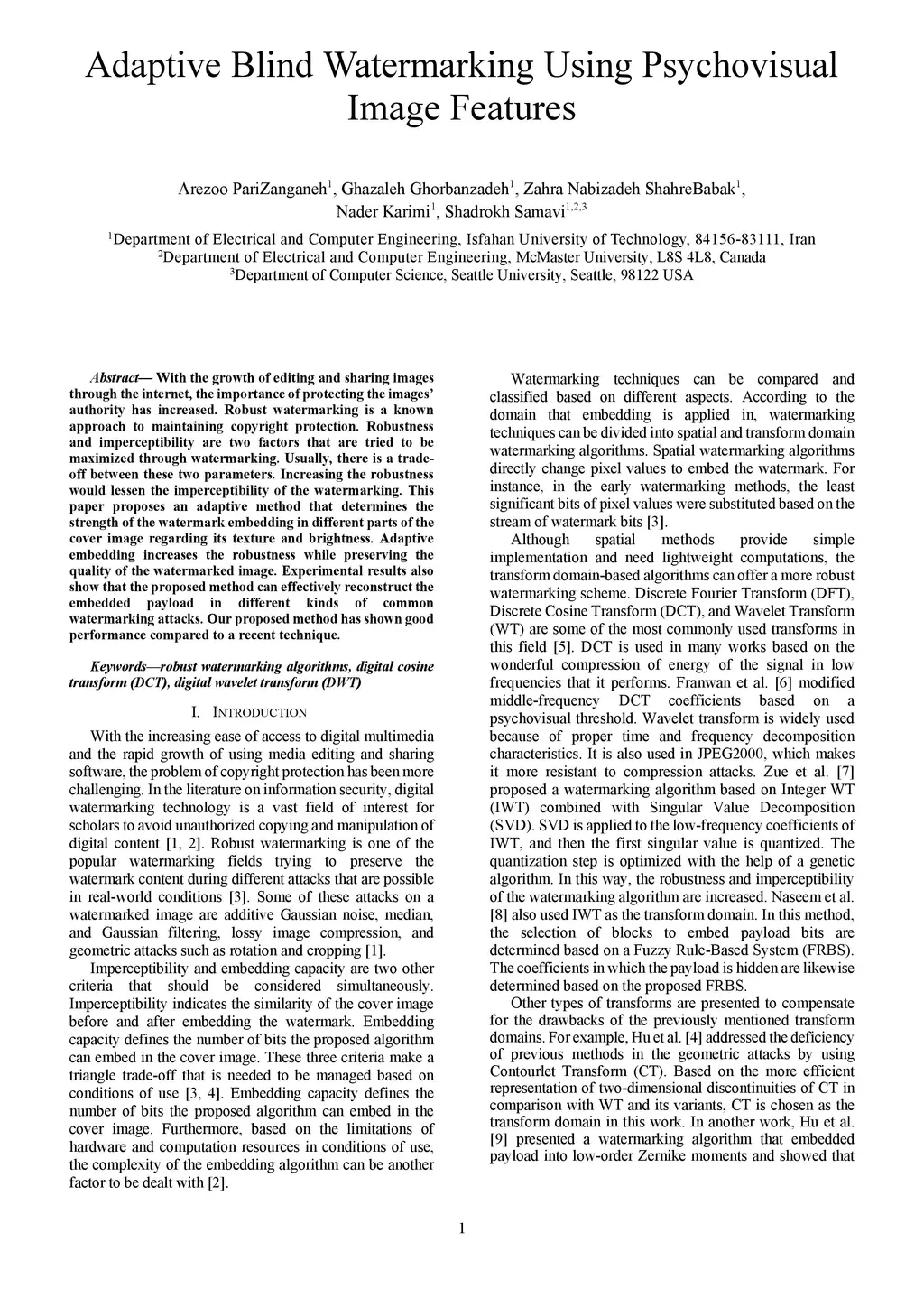Adaptive Blind Watermarking Using Psychovisual Image Features