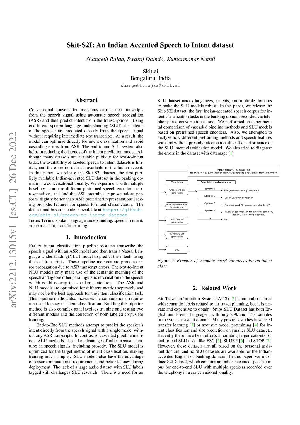 Skit-S2I: An Indian Accented Speech to Intent dataset