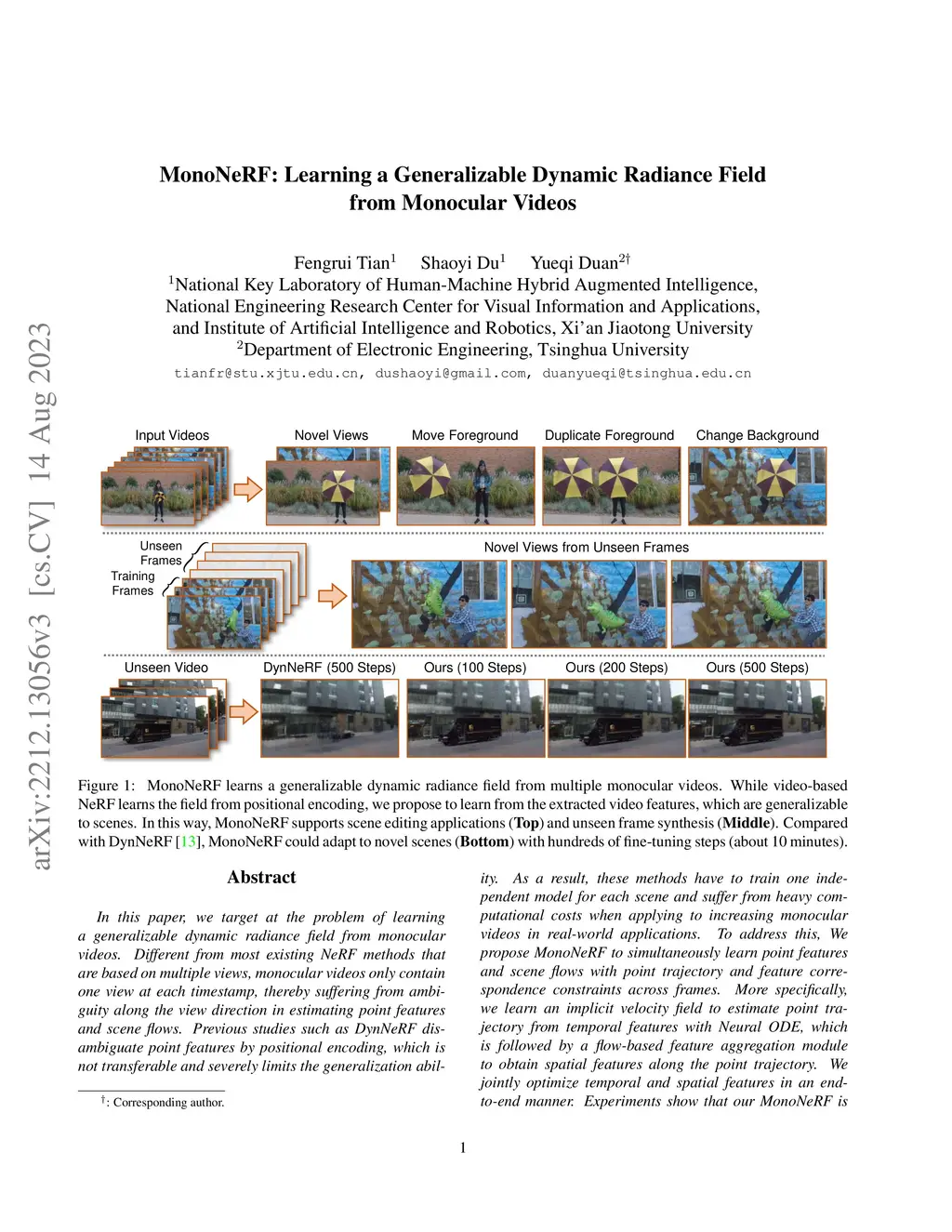 MonoNeRF: Learning a Generalizable Dynamic Radiance Field from Monocular