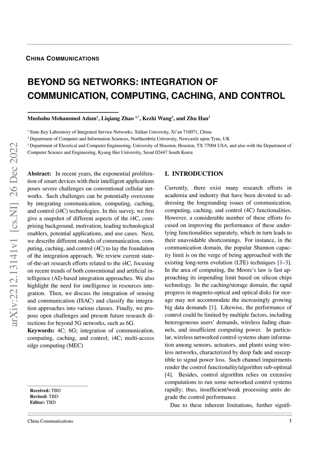 Beyond 5G Networks: Integration of Communication, Computing, Caching,